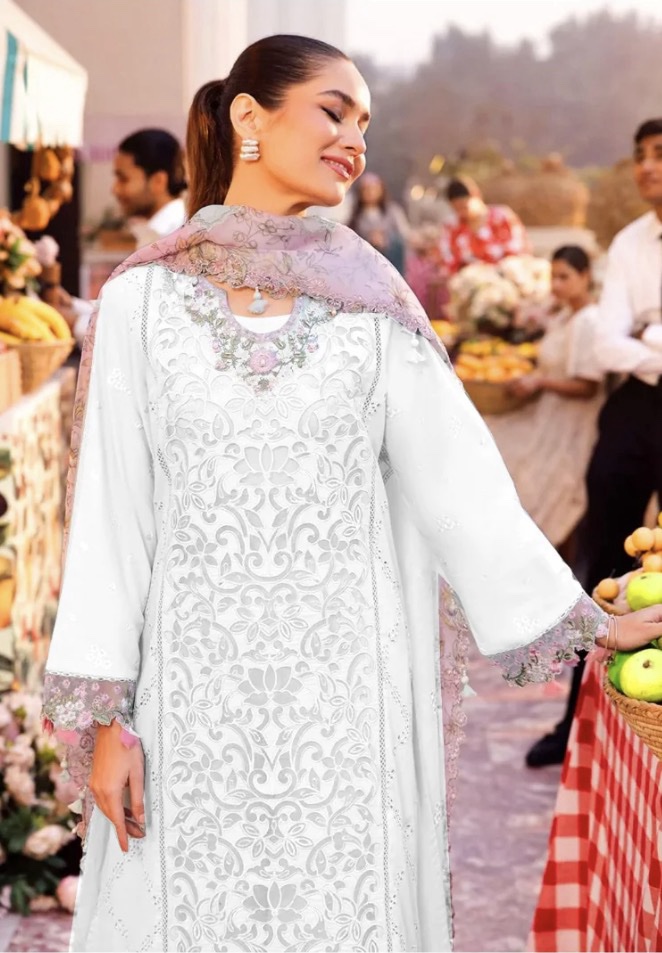 Sardinia | Pure Cotton ChikanKari Embroidery 3Piece Unstitched Replica (White)